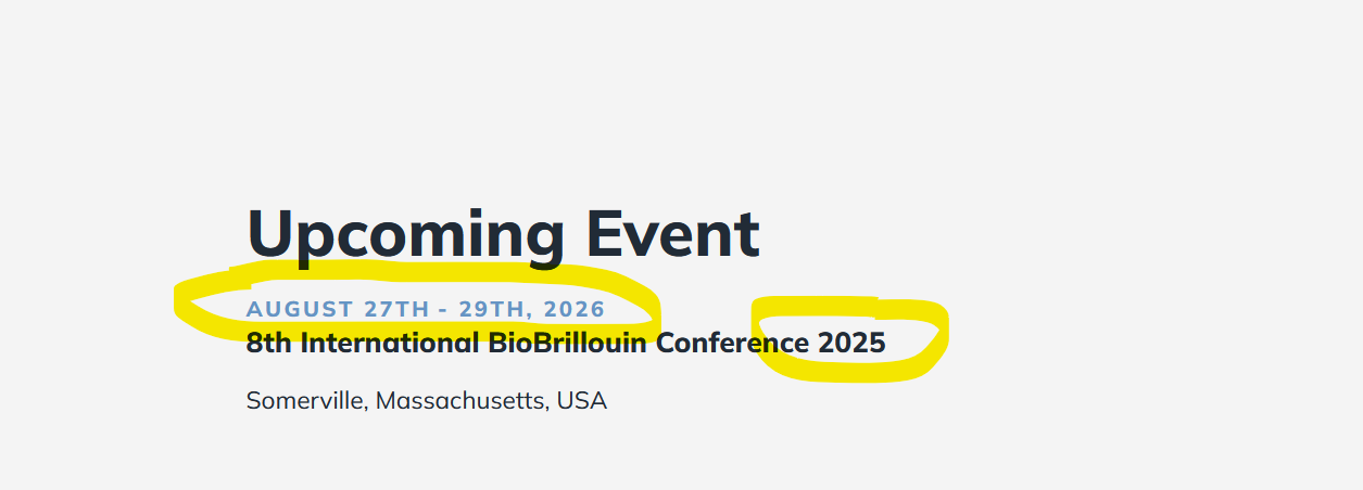 Hi Kareem, I fixed it, but it will probably change itself again! That’s not the first time the date of the Biobrillouin meeting has randomly changed. It’s some kind of bug in the way that events are stored in Kirby. Kristie